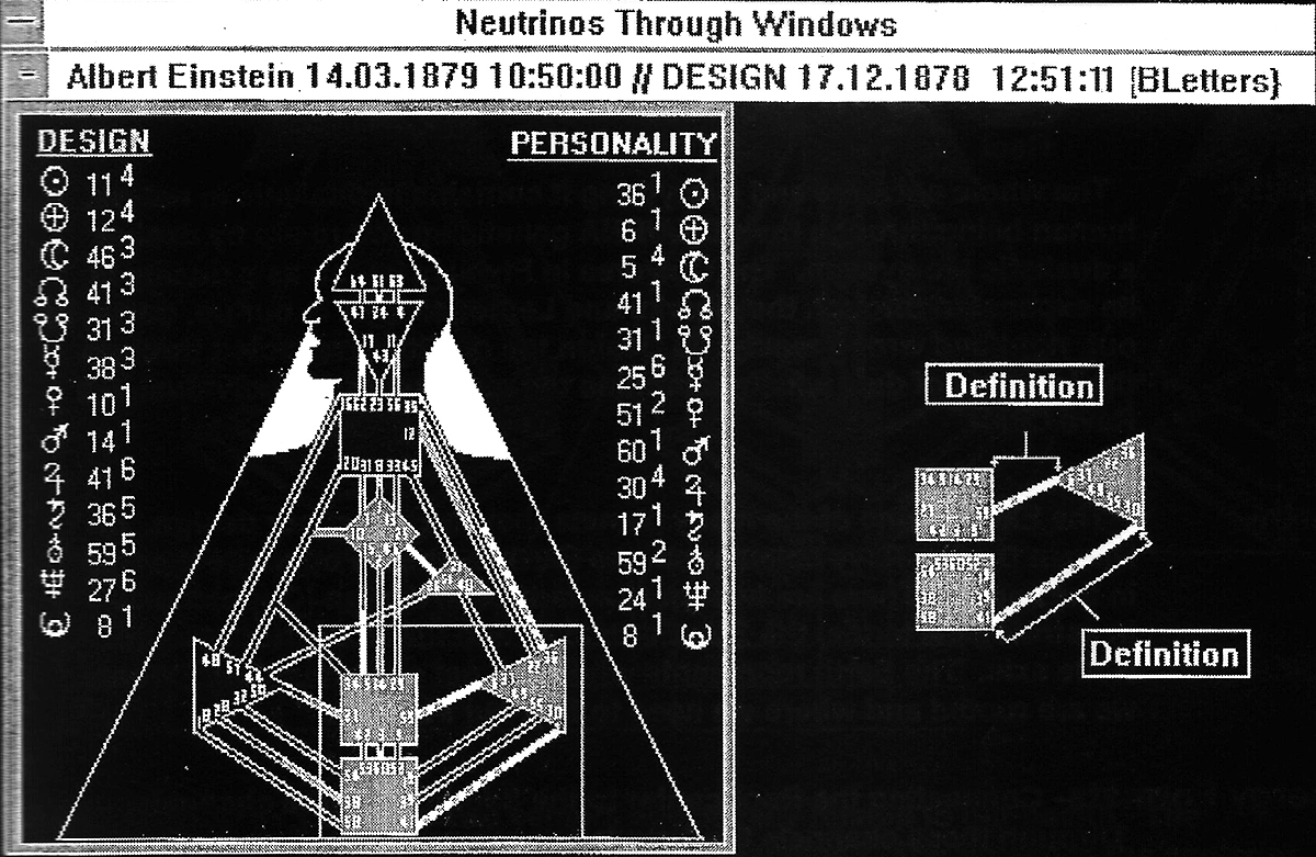 In preparing a Rave Chart, when a planet is in a position which activates one gate of a channel and another planet is in a position activating the other gate of the same channel, this is definition. Graphically it is illustrated by coloring in the entire channel and the connected centers. Definition creates a fixed and permanent connection. It cannot be changed. It is what is reliable in a design because it is consistently present. It is always active. Most human beings rather than living out their definition which always will bring about correct action, spend their lives living out what is not defined in them.
