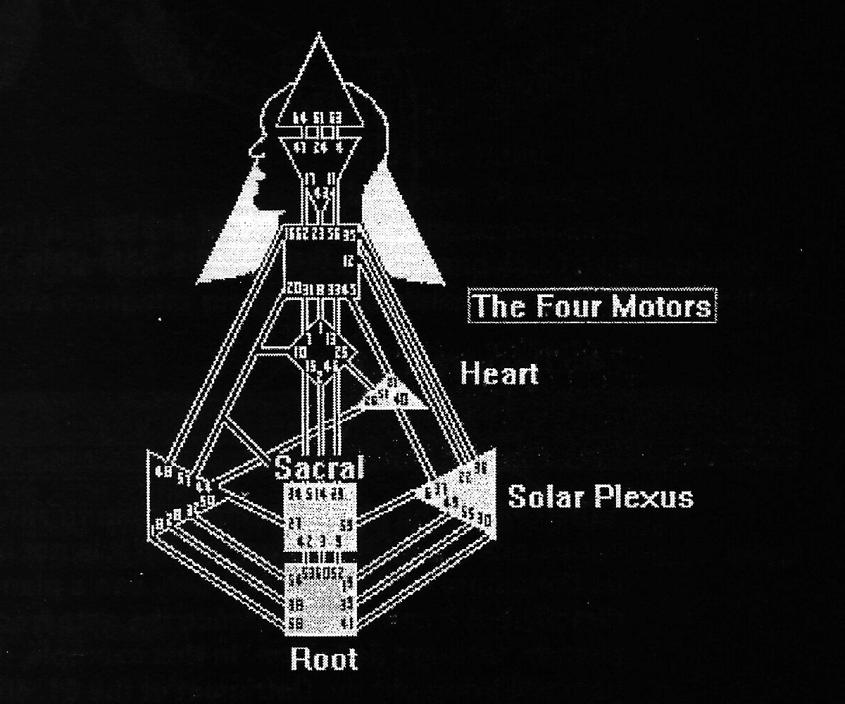 В Дизайне Человека тело имеет четыре мотора. Эти энергетические центры, когда они соединены напрямую или через непрерывное определение с Горловым Центром, проявляются в виде действия.
